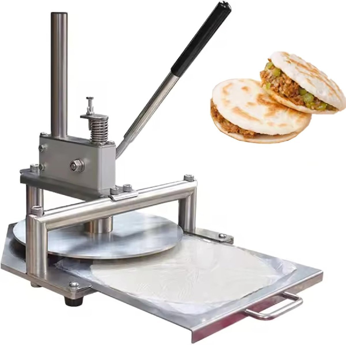 - 25cm業務用ハンド生地プレス機、ステンレススチール製ピザ生地平坦化プレス機、厚さ調節可能、朝食店、カフェテリア、ベーカリー、家庭用