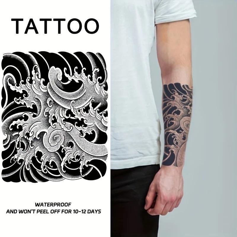 - 【タトゥーシール】★波 フェイクタトゥー 22cm×31cm 腕 脚 刺青シール 和柄 防水・耐久性あり! 和彫 (HA-003)