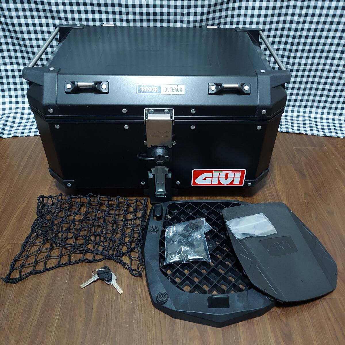 > そこそこ美品! GIVI(ジビ) モノキー TREKKER OUTBACK(OBKN58B/58L)+ベースプレート(E251) 便利アイテム組み込み済み その他オマケ付き