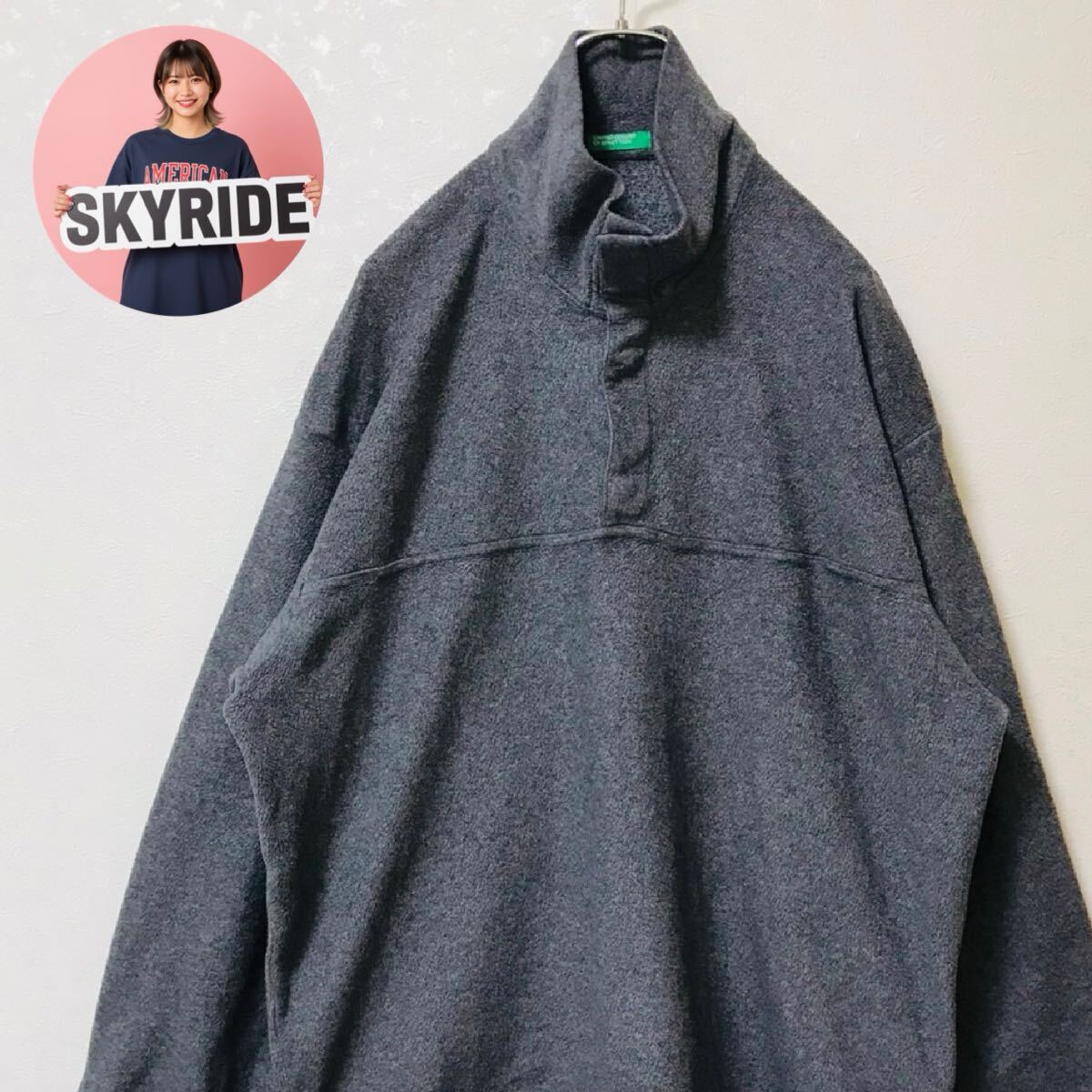 - 【人気】ユナイテッドカラーズオブベネトン 00s メンズ フリース ハーフスナップ グレー L ゆるだぼ ビッグシルエット 古着 #TT0322