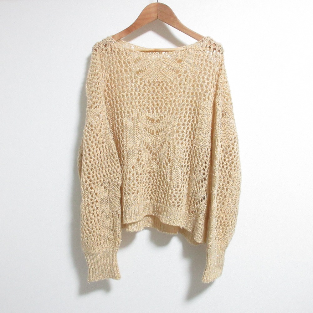 > 22SS Mame Kurogouchi マメクロゴウチ Botanical Pattern Knitted Lame Pullover ラメニット セーター サイズ2 ベージュ