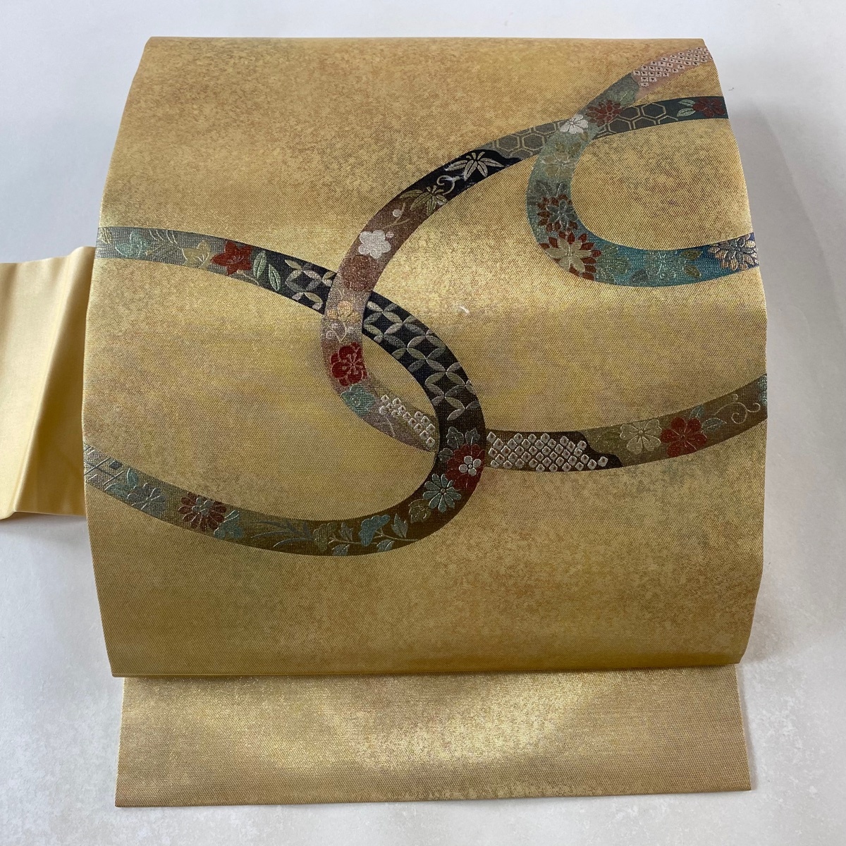 > 名古屋帯 美品 優品 秋草 有職文様 金銀彩 金色 正絹 【中古】
