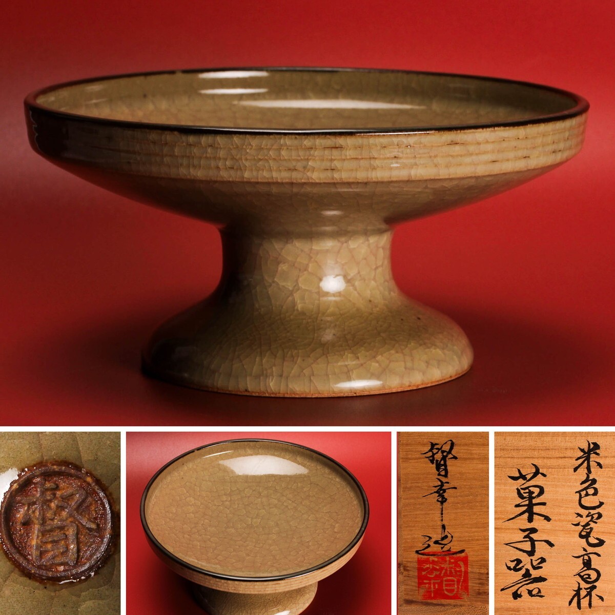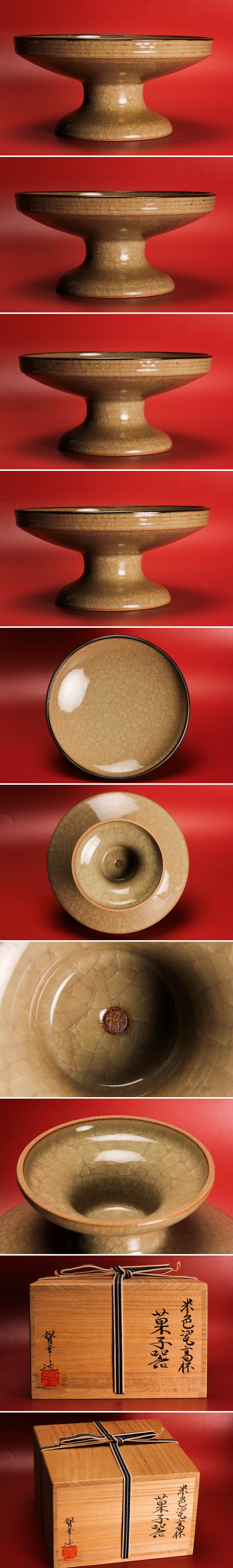 - 大石督幸 米色瓷高杯菓子器 共箱 本物保証