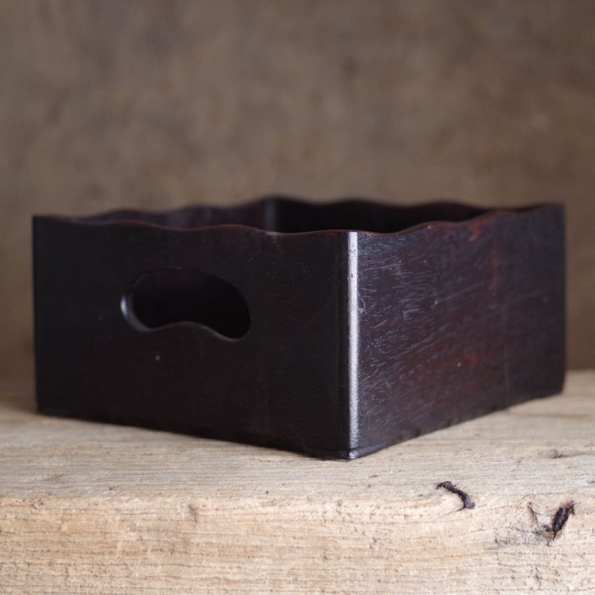 - 深い色味の時代煙草盆 収納 引出し木地盆 酒器盆 昭和期以降 木製 煎茶盆 茶道具 古民具 古民藝 骨董 検 仏教美術ぐい呑盃根来浄法寺酒器設