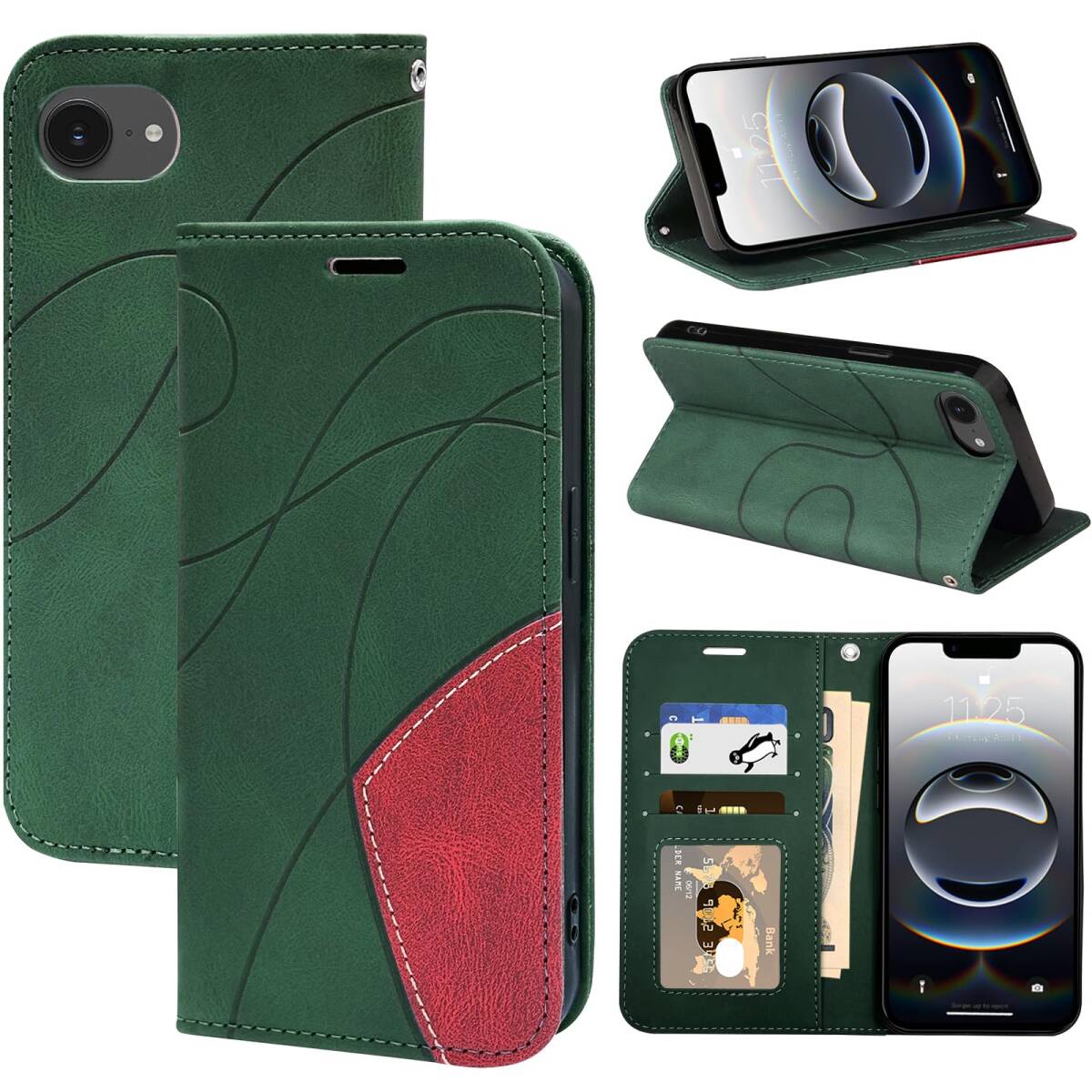 - 便利 携帯カバー 高PUレザー ストラップホール 耐衝撃 多機能 カード 財布型 アイフォン16e スマホケース カード収納 柔
