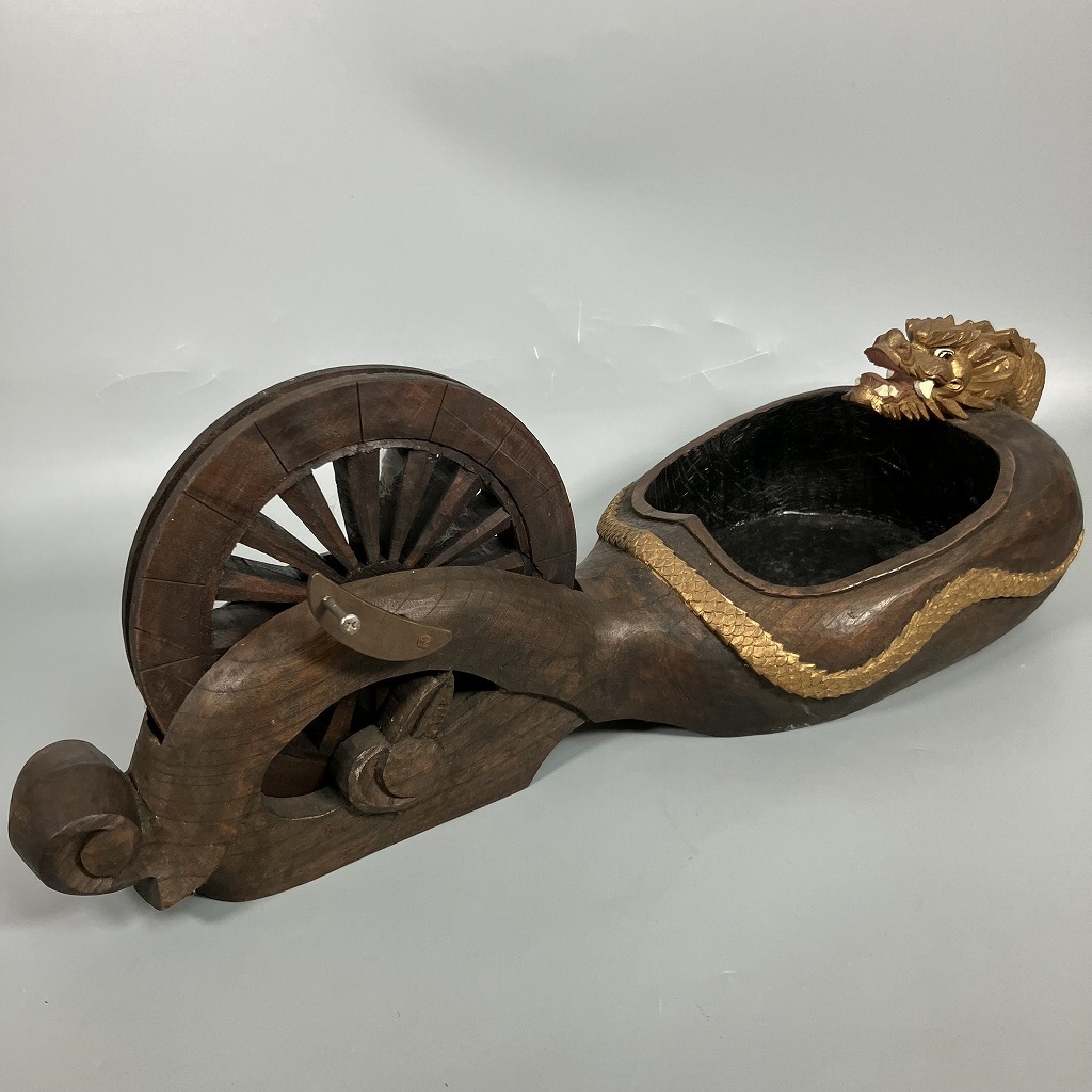 > K3-241 墨壺 大 置物 飾り インテリア 大工道具 彫刻 工芸品 民芸品 約H24×W23×D60cm 亀裂有り 中古品 ジャンク