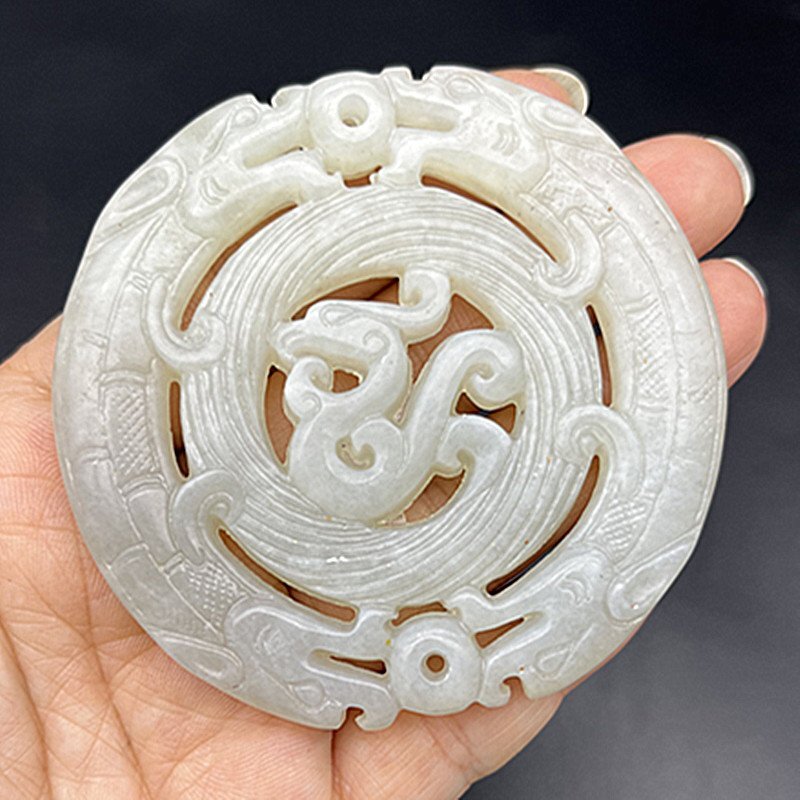 - 岫玉 透かし彫り龍鳳ペンダント龍鳳は祥玉玉ペンダント 招財 ペンダント 玉細工 玉璧ブランド 観賞 置物