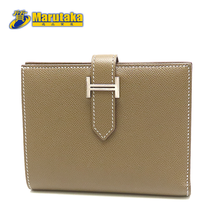 - エルメス ベアンコンパクト エトゥープ ヴォーエプソン HERMES グレージュ シルバー金具 ミニ 小さい 逸品質屋 丸高 尼崎