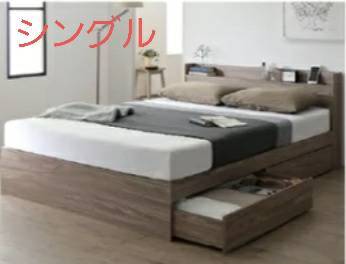 > マットレス付き【アウトレット品】シングル・Newデザイン2杯収納コンセント付きベッド ライトグレー 9-3