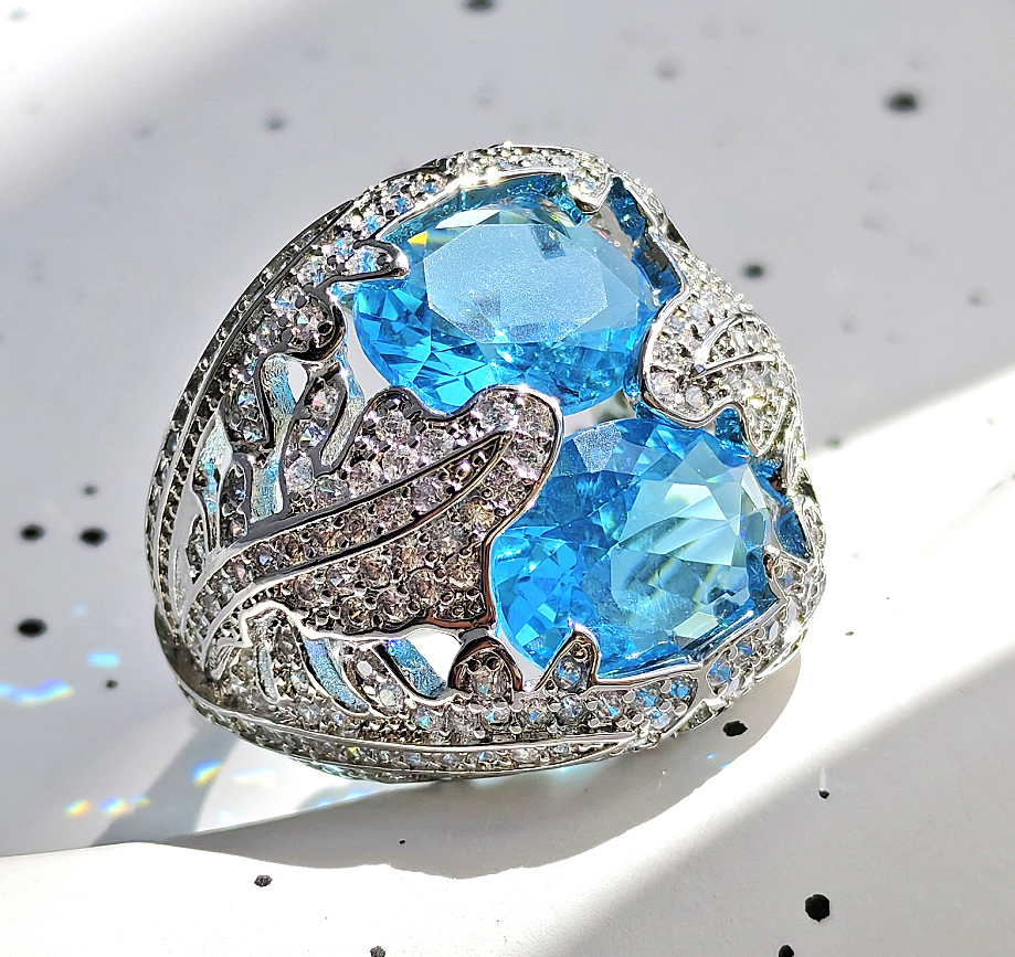 - N2507121◆Bigstone◆【魅力のブルー】女王スタイル*大豪華な宝石*欧米大人気*高品質なリング 13号