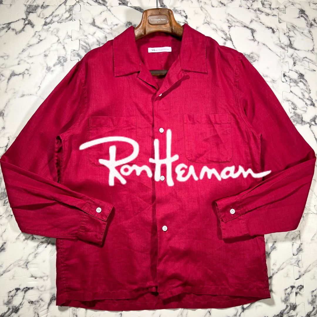 - 未使用級/リネン100%(L位) ●ロンハーマン RHC 長袖 オープンカラー シャツ ピンクパープル 麻 RonHerman メンズ OCEANS ジャケット 羽織