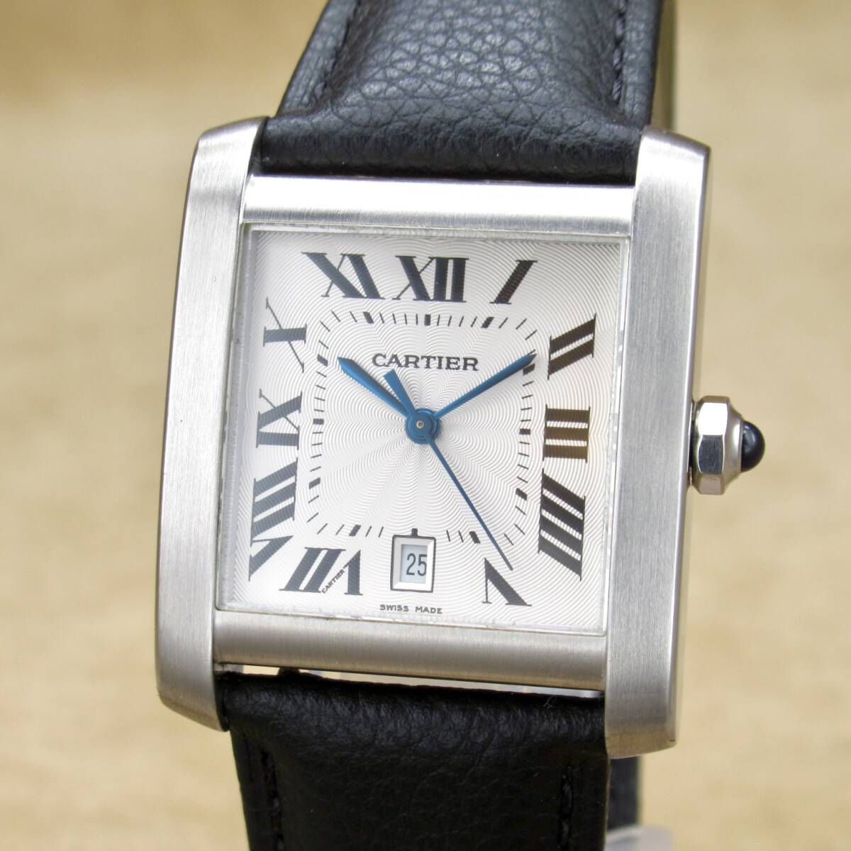 - 【点検/仕上げ済】Cartier カルティエ W5101755 タンクフランセーズXXL オートマチック デイト カレンダー シルバー レザー ローマン