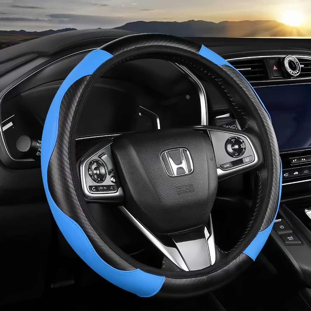 - ハンドルカバー ステアリングカバー キルティング 37~38cm カーボン調 車用 汎用 ステッチ 耐摩耗 滑り止め O型 D型