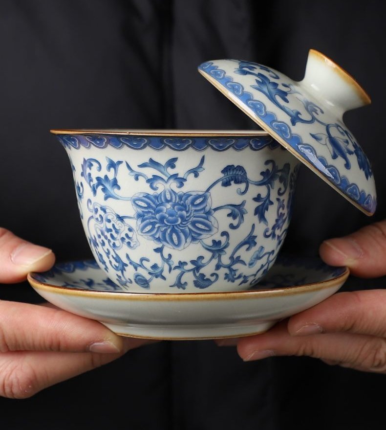 - 中国茶器 蓋碗 青花 汝窯 開片 蝉翼開片 茶杯 茶碗 茶道具 お茶碗 中国茶道 中国工夫茶碗 陶瓷茶具 簡易包装 郵便発送 zh1037
