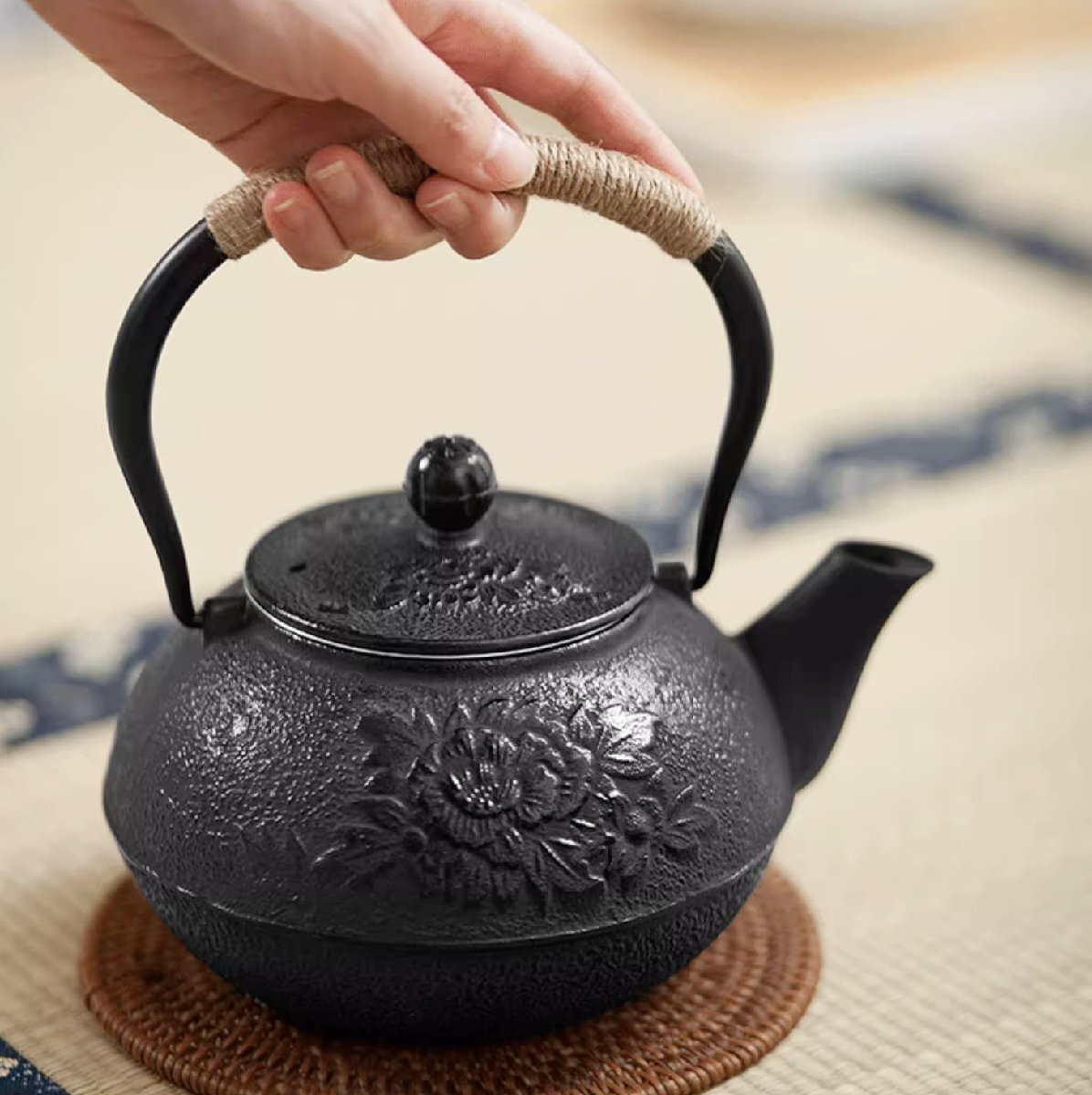 - 新品 鉄瓶 砂鉄 鉄器 鉄製 茶道具 牡丹 やかん 和食器 大容量 1.35L 直火 IH対応 おまけ4点セット zh40