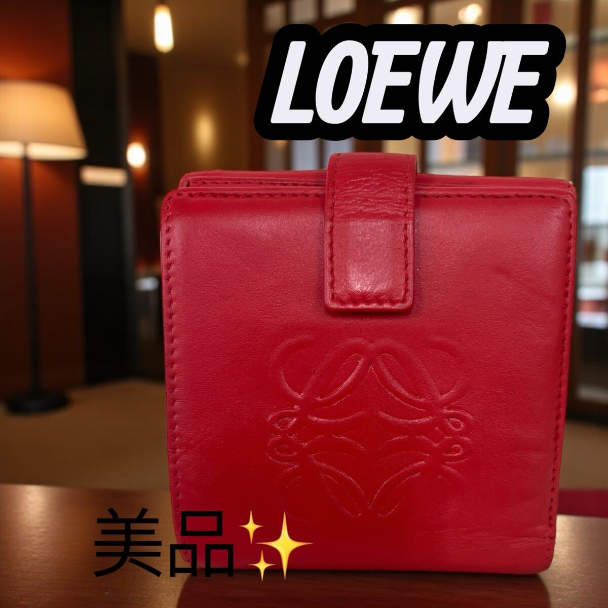 - 【美品】LOEWE ロエベ 折り財布 レッド アナグラム ピンク 財布 レザー ウォレット 二つ折り財布