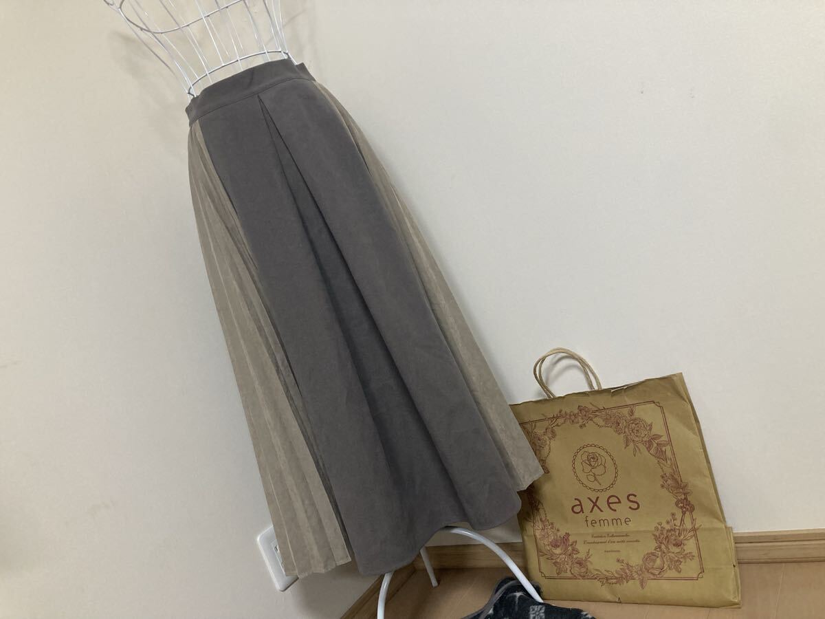- アクシーズファム☆プリーツ切り替えバイカラーロングスカート☆used