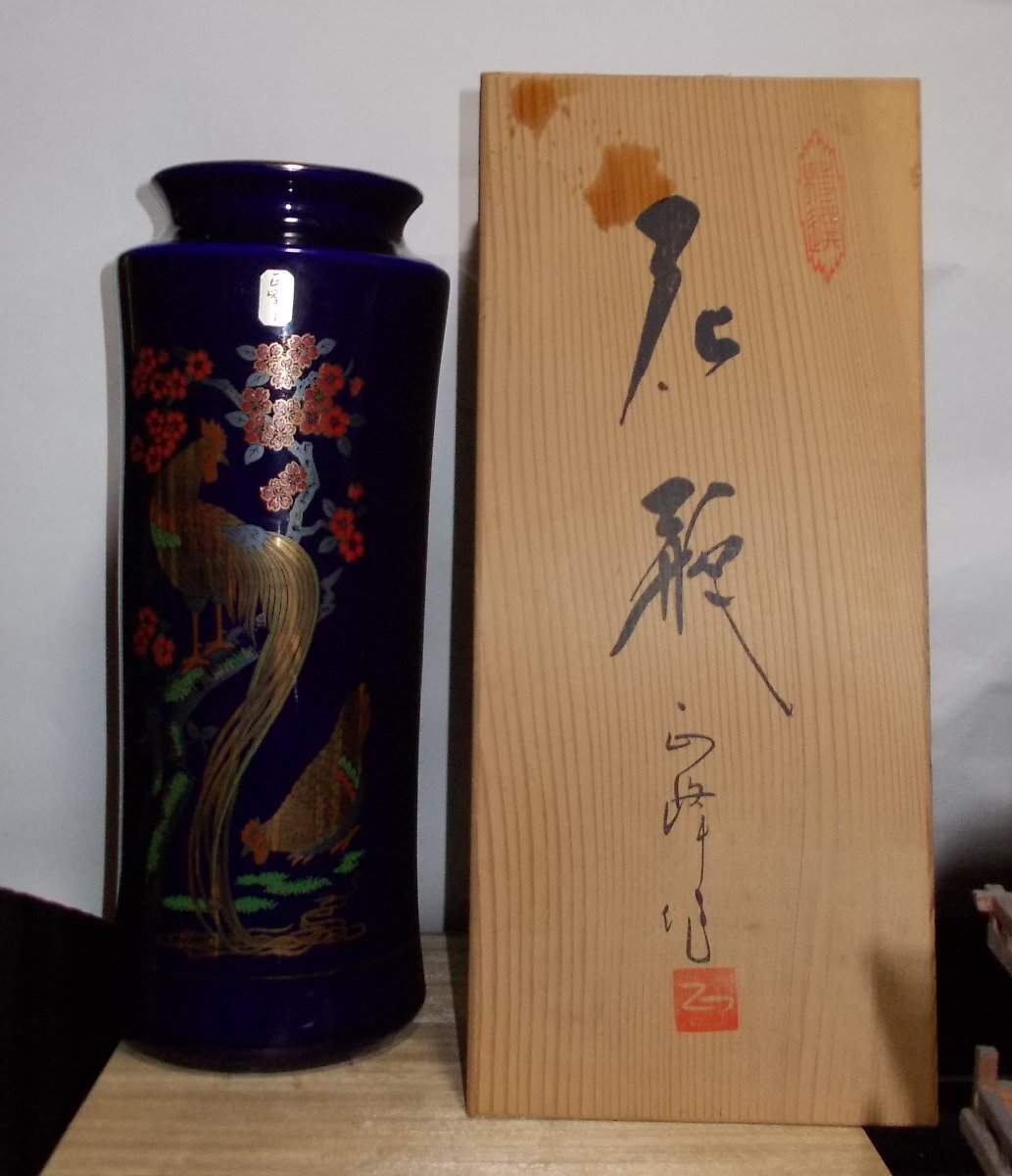 - 花瓶 正峰 特選陶器 尾長鳥 花鳥紋様