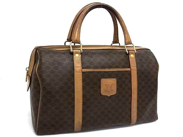 > 1円 CELINE セリーヌ マカダム柄 PVC×レザー ハンドバッグ ボストンバッグ レディース メンズ ブラウン系 FR4474