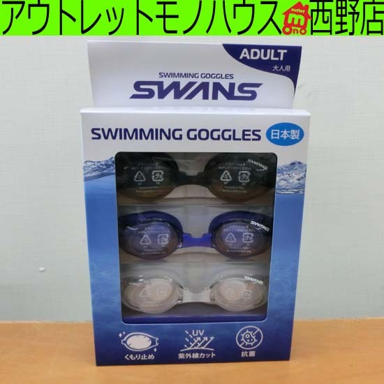 新品 スワンズ スイミングゴーグル② 3個セット 大人用 黒/青/透明 水泳 SWANZ 紫外線カット スワンズ レターパックプラス対応 札幌市 西区