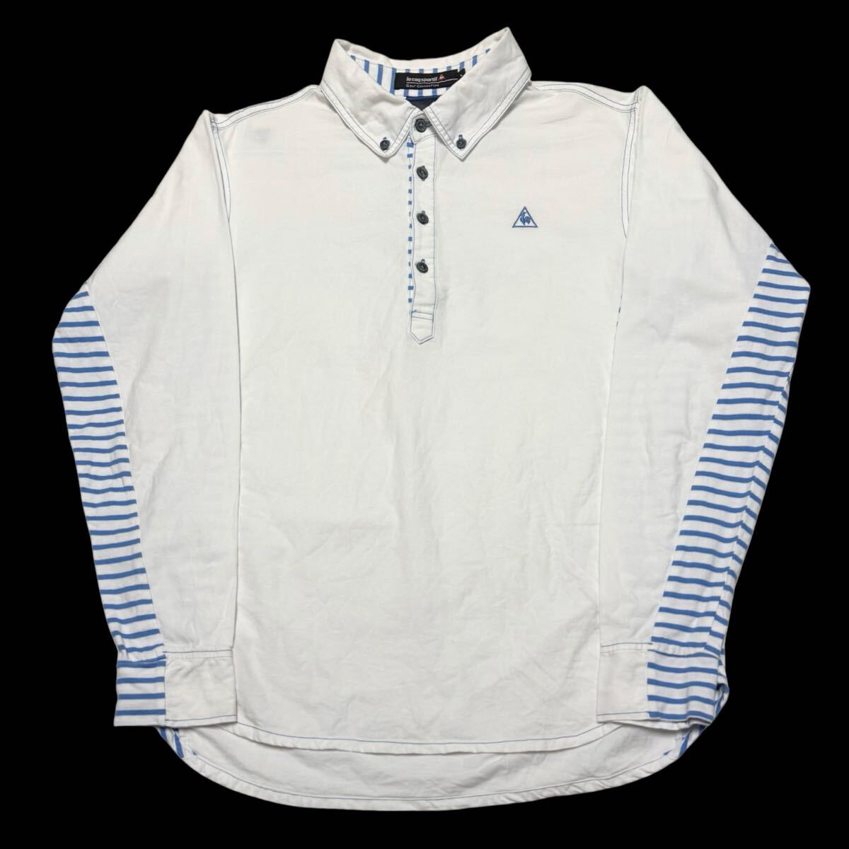 > le coq sportif GOLF ルコックスポルティフ 長袖プルオーバーシャツ ボタンダウン ボーダー L