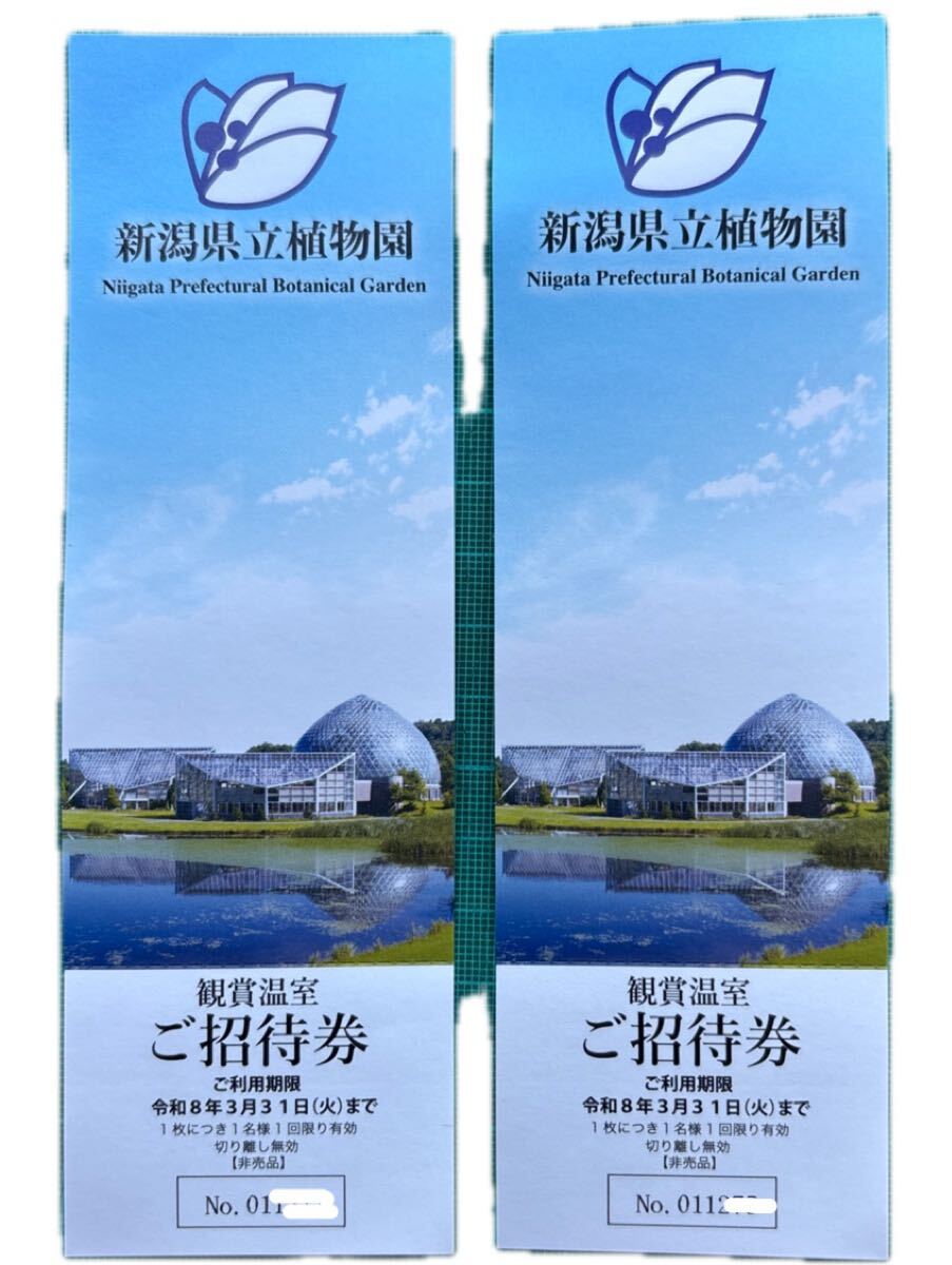 - 【送料無料】新潟県立植物園 鑑賞温室 招待券 2枚 令和8年3月31日まで