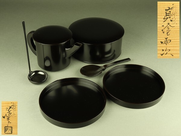 - 【宇】3207 漆匠 川端近左造 利休形 真塗両次 飯櫃 盆など 共箱