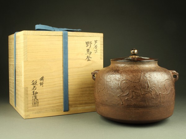 - 【宇】2251 釜師 般若勘渓造 芦屋写 野馬釜 共箱 茶道具