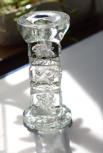 > ドイツから ガラス ゾディアック キャンドルホルダー 十二星座パターン スタンド グラスオブジェ ヴィンテージ アンティーク ig4639
