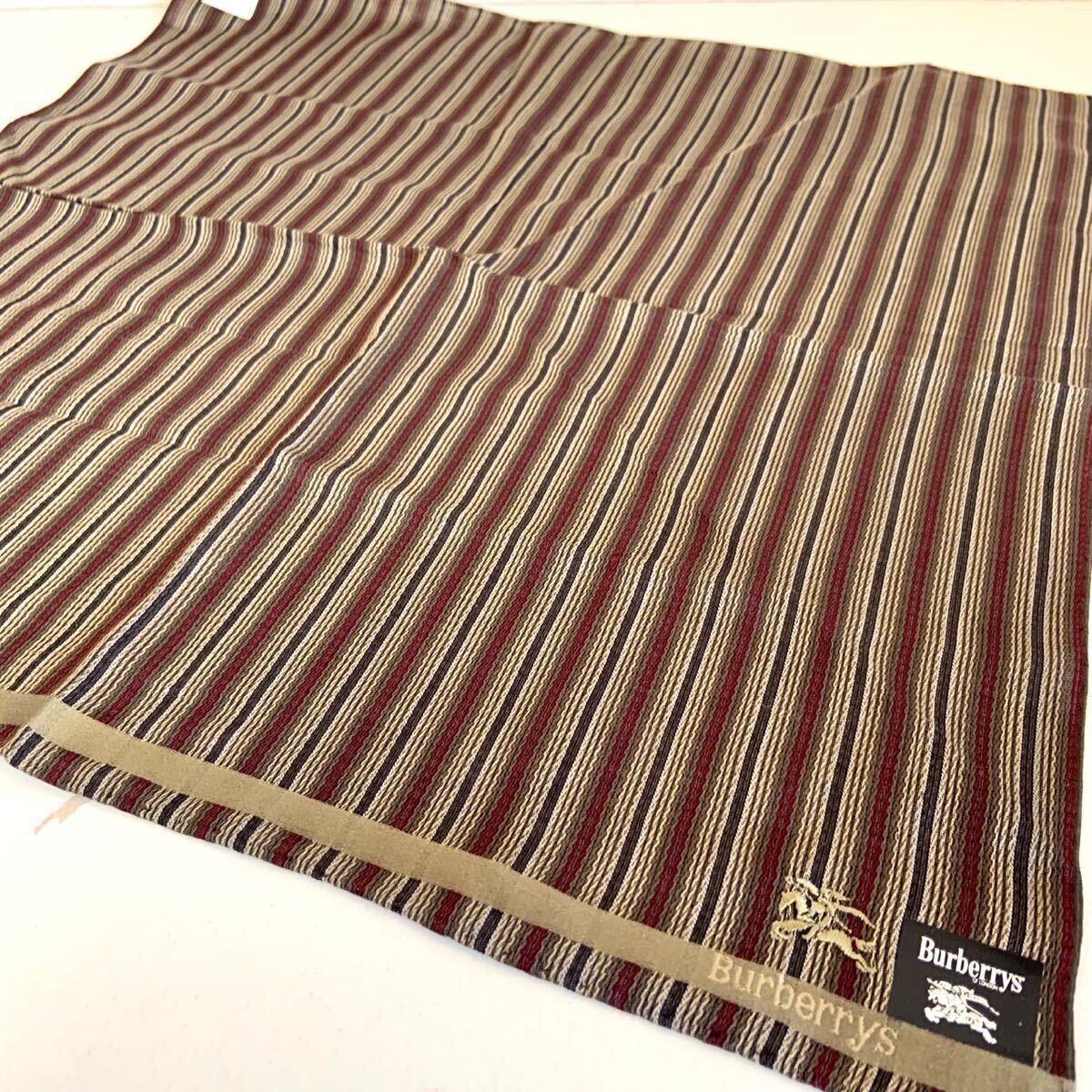 > 未使用 Burberrys バーバリー 大判ハンカチ 約46×46.5cm 綿100% 総柄 ロゴ刺繍 メンズ 紳士 ハンカチ ブルーミング中西(株)