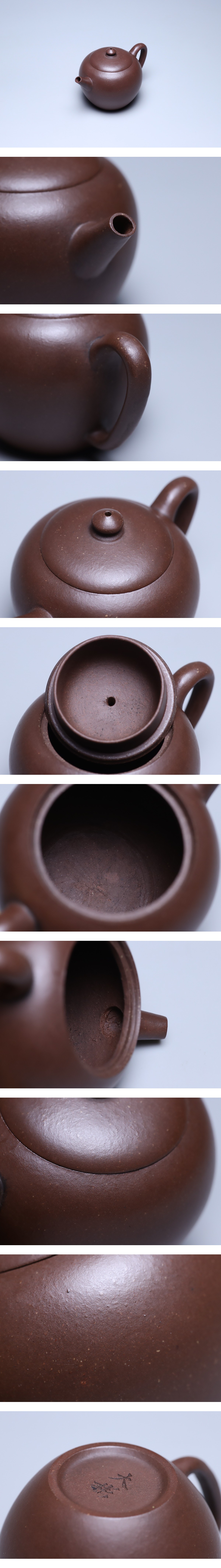- 唐物 紫砂壺 紫泥急須 「貢局」在銘 水平 茶道具 時代物/朱泥/紫泥/段泥/中国美術/古美術/骨董品 L07787
