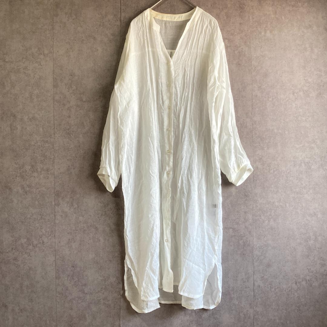 - ゴージ(M)Vネックシャツロングワンピース*シースルー*透け感*羽織り*長袖*白