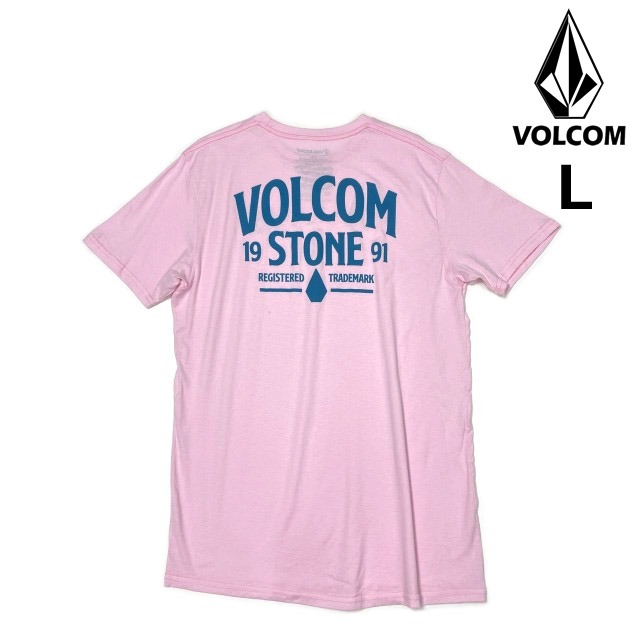 - 売切り【正規新品】VOLCOM ボルコム◆半袖 Tシャツ スケート サーフ ストーンロゴ バックプリント 男女兼用(L)ピンク 250617-B