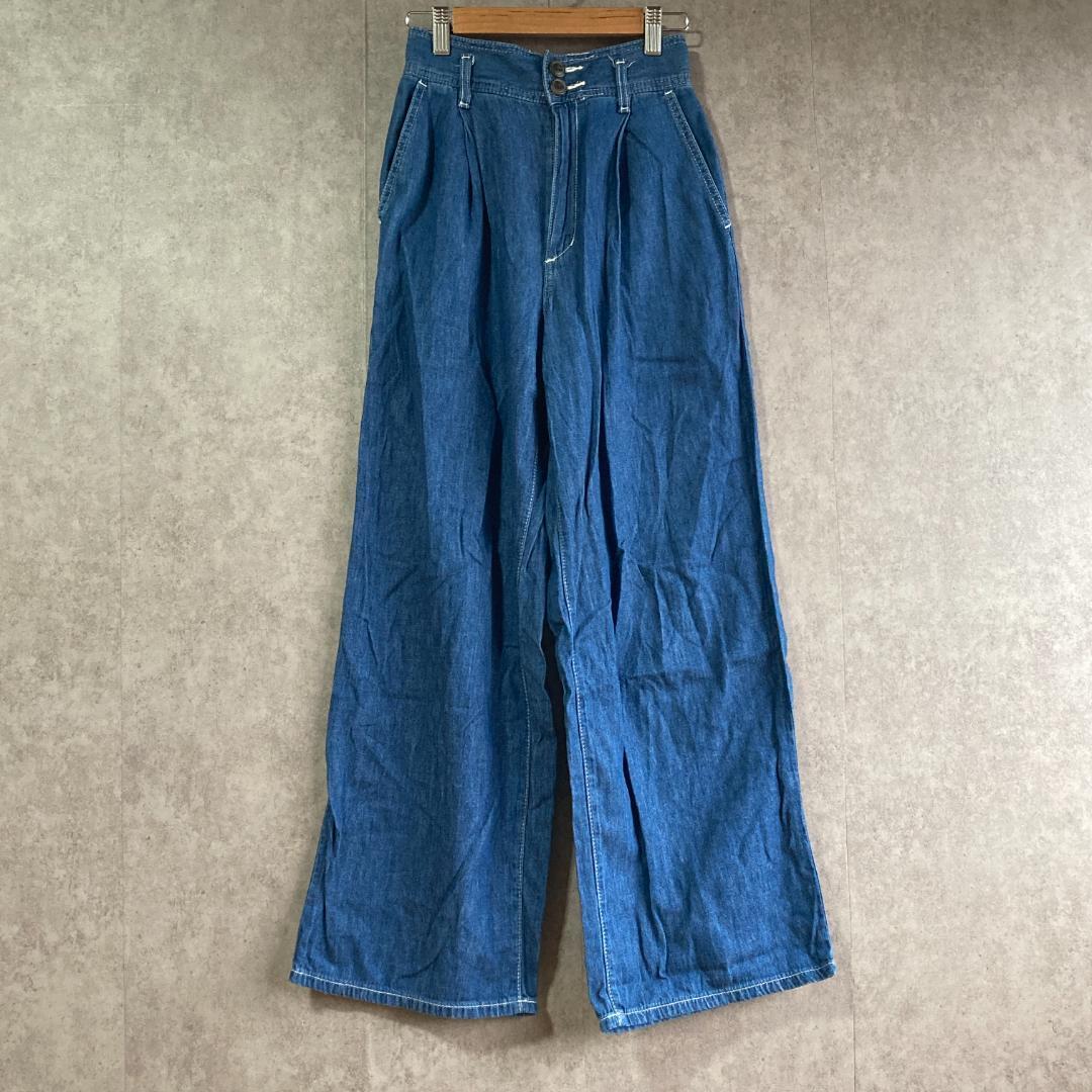 > GU(S)ライトデニムタックワイドパンツ*後ろウエストゴム*柔らか素材*ポケット