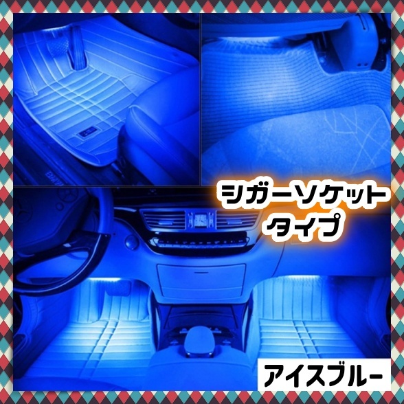 - 2本 LED フロアライト シガーソケット スイッチ付き アイスブルー 内装 足元 装飾 フットランプ LEDテープ イルミ 自動車 バイク 汎用