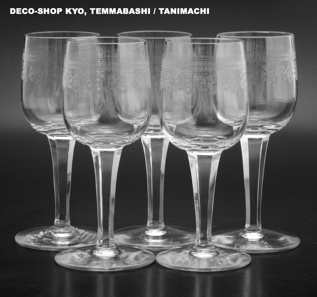 - バカラ・幻品!!アールヌーヴォー有名希少作!!細密グラビュール装飾,ポンパドゥール!!貴重上級カットステム版ポートワイングラス・5点セット
