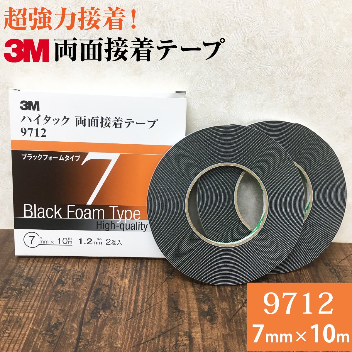 - 3M ハイタック両面接着テープ 9712 巾7mm 2巻入り ブラックフォームタイプ 厚み1.2mm 長さ10m スリーエム 自動車補修 強力接着
