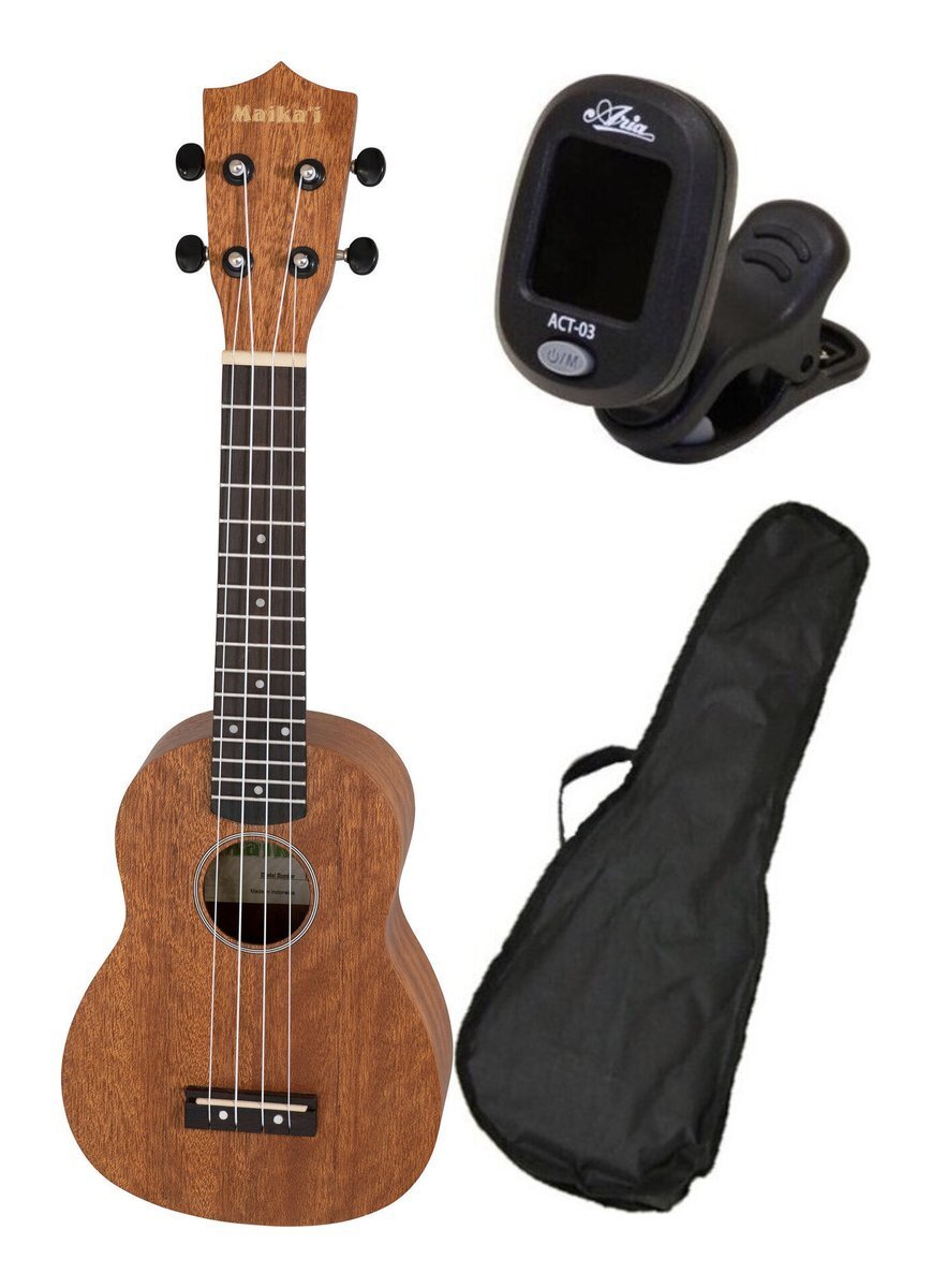 - 即決◆新品◆送料無料Maika’i MKU-1/SBR/チューナー+ケース付 (シースルーブラウン) ソプラノウクレレ ギヤペグ