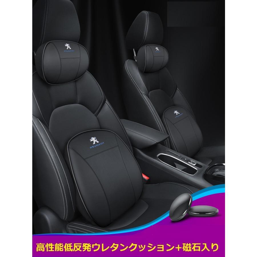 > プジョー PEUGEOT ネックパッド 低反発ウレタン 腰当て 腰クッション PUレザー メモリーフォーム 疲れ防止 ヘッドレスト 磁石入り 5色選択