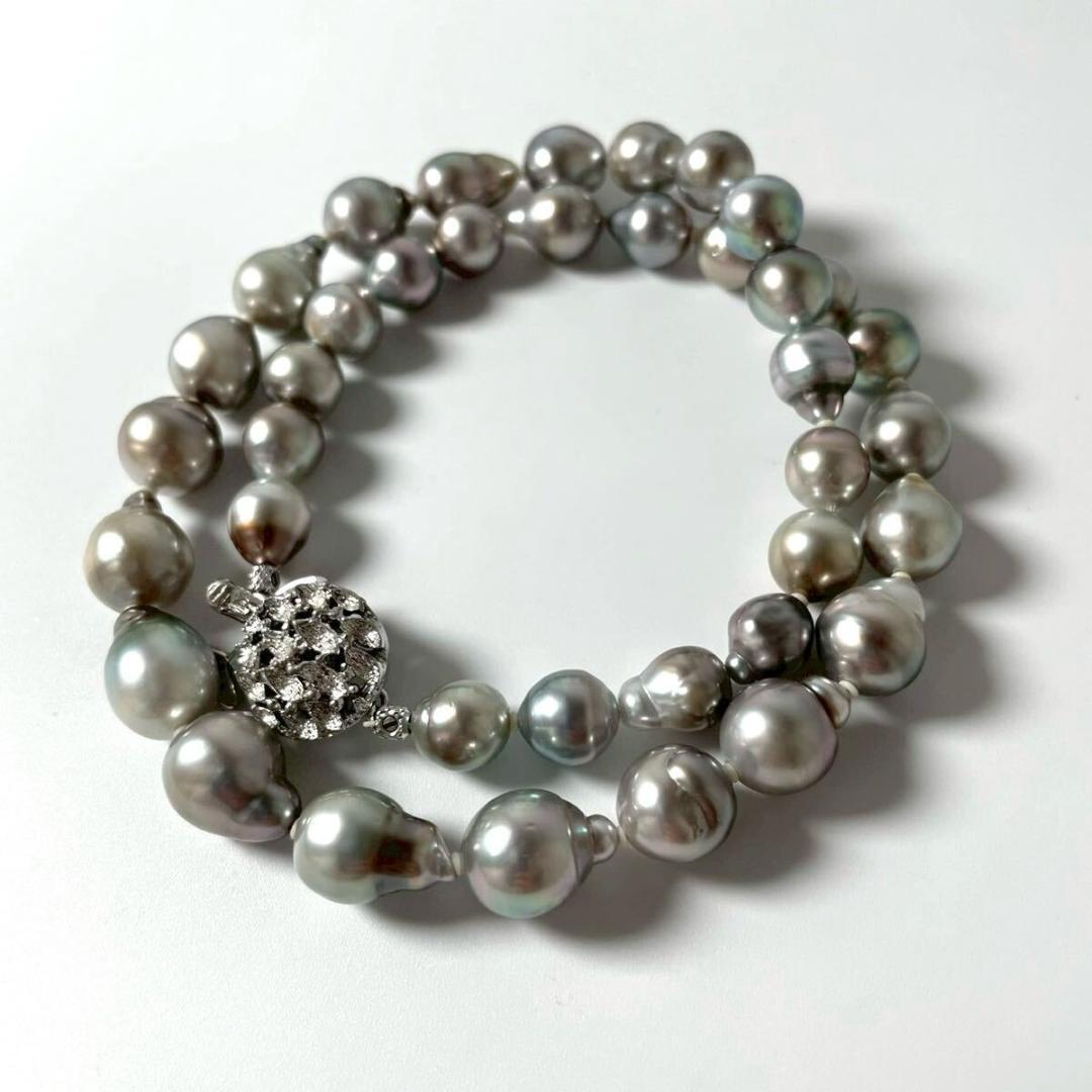 > あこや 真珠 パール ネックレス 本真珠 Silver 金具 ピーコックグリーン 約8.5mm-10mm 約40cm 約46.1g