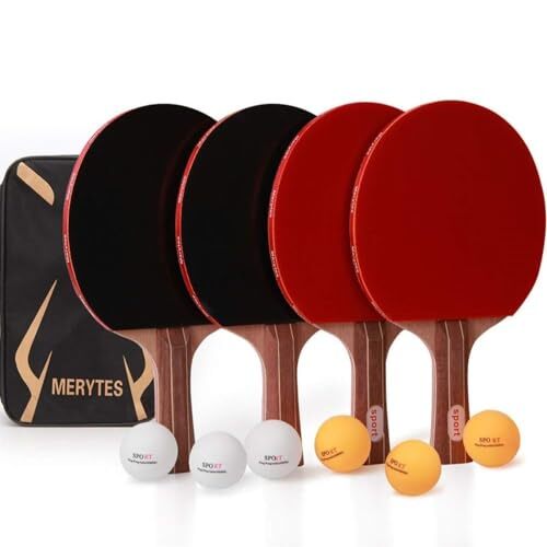 - Merytes 卓球 ラケット ピンポンラケット パドル 4本セット 卓球ボール6個付き 卓球セット
