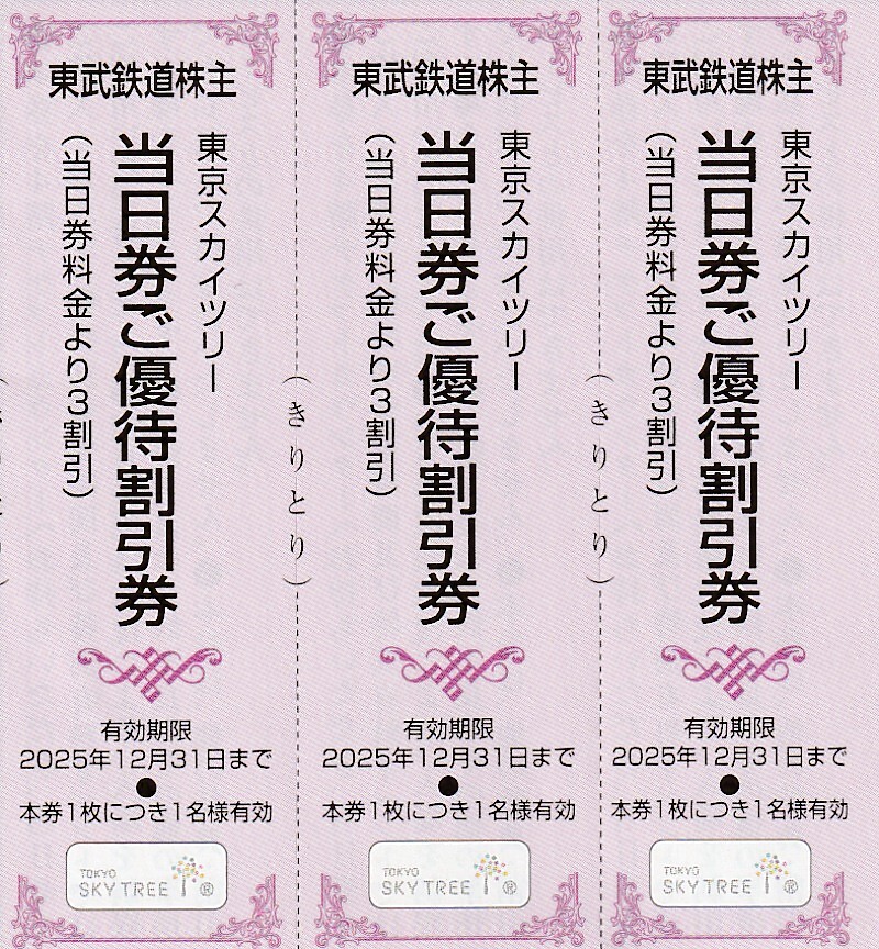 - 送料85円~★東武鉄道★株主優待割引券★東京スカイツリー★当日券ご優待割引券★3枚セット★即決