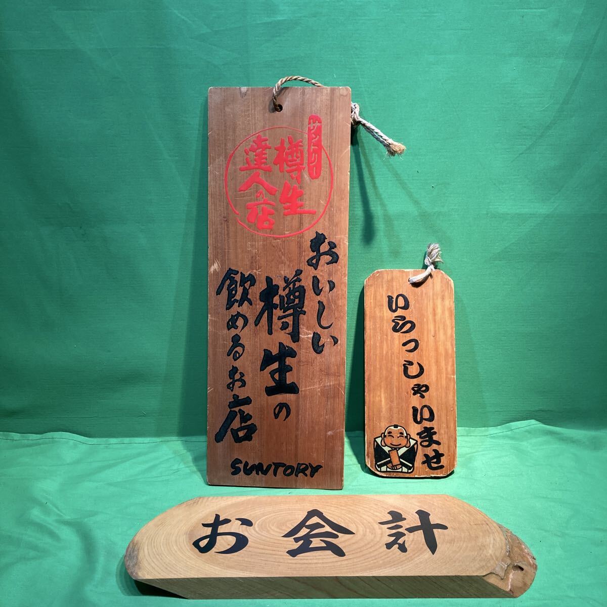 - 木製 お店 看板 プレート 吊り下げタイプ サントリー 樽生 お会計 いらっしゃいませ プレート 中古品