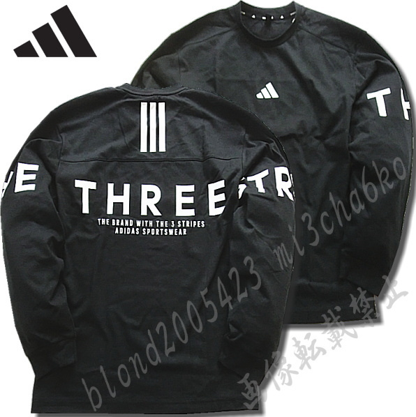 > ■新品【adidas】アディダス ゴルフに最適 背面BIGロゴ ルーズフィット 速乾生地 クルーネック 長袖シャツ■BK/2XL(3L)
