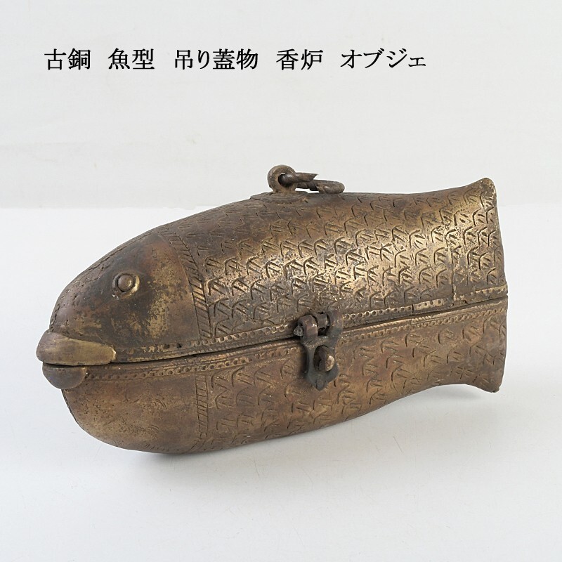 - 吊釜道具 古銅 魚型 吊り蓋物 香炉 オブジェ 古玩 CHAV