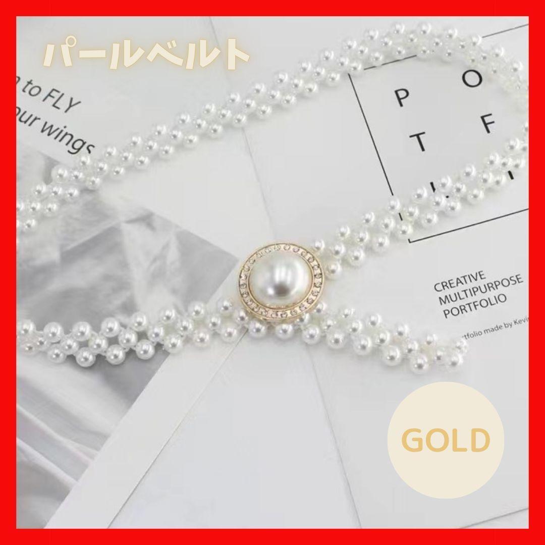 - パール風ベルト パール風 ゴールド 帯締め 帯飾り ベルト 着物 細見え