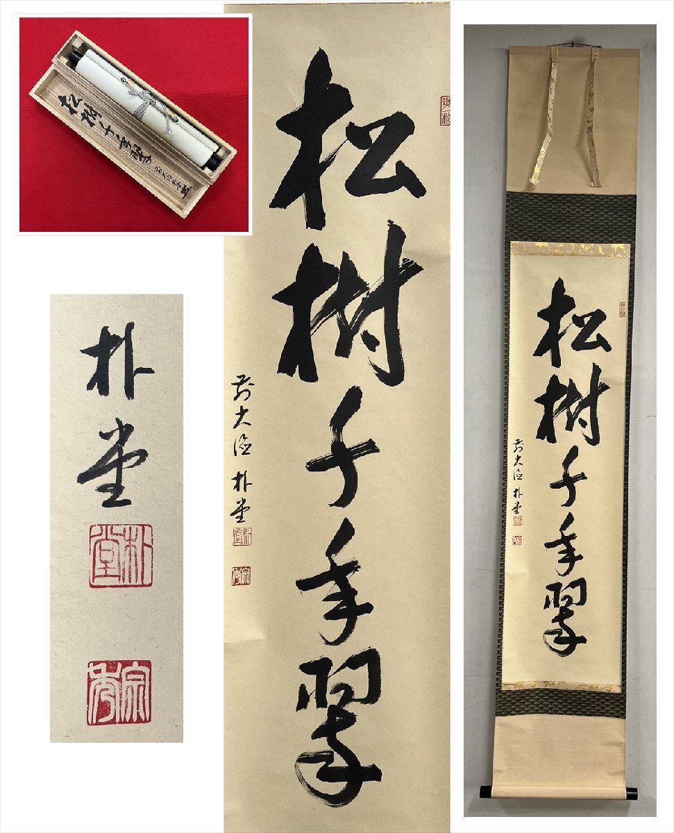 - 【千寿】大徳寺派 福聚院 佐藤朴堂 松寿千年翠 一行書 紙本 d1665◆共箱 在銘 季節掛 茶掛 掛軸 掛物 茶道具 100041352