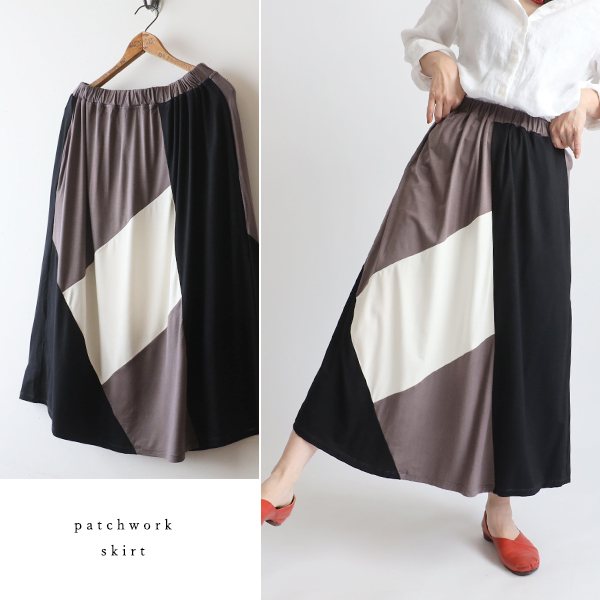 - 最終SALE 愉快なスカートまつり パッチワーク スカート スムース伸縮ストレッチ Tシャツ カットソー生地 スカートY26G
