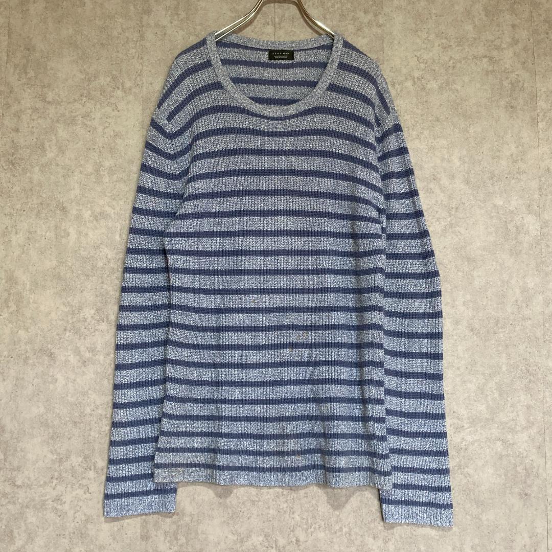 - ザラ(L)ボーダーコットンニット*セーター*Uネック*メンズ*長袖*アメカジ*綿