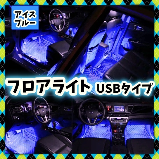 - 2本 USB給電 LED フロアライト アイスブルー 車内 間接照明 装飾 フットランプ LEDテープ イルミ 簡単 カスタム バイク 自動車 汎用